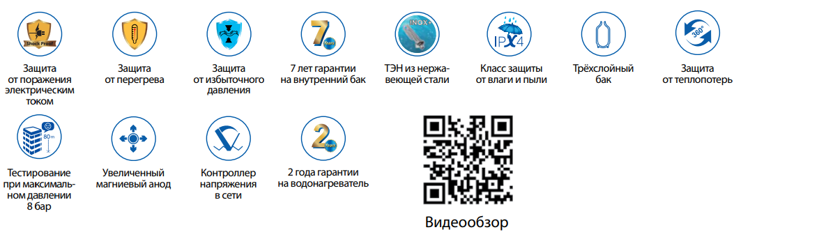 | Системы защиты | обратный клапан / предохранительный клапан / от включения без воды / от перегрева |