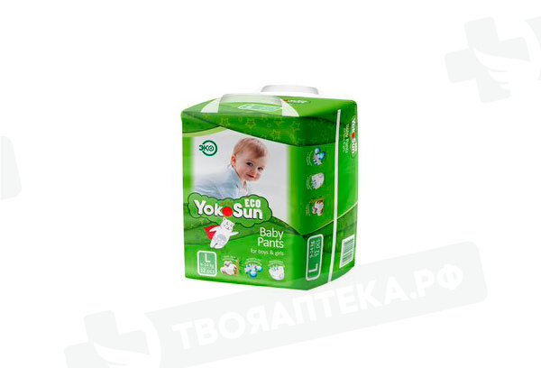 Детские подгузники-трусики YokoSun Eco размер L (9-14 кг), 44 шт.