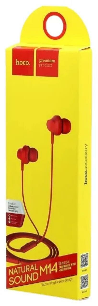 Наушники проводные HOCO M14 вакуумные с микрофоном, 1,2 метра, красный (30/300)