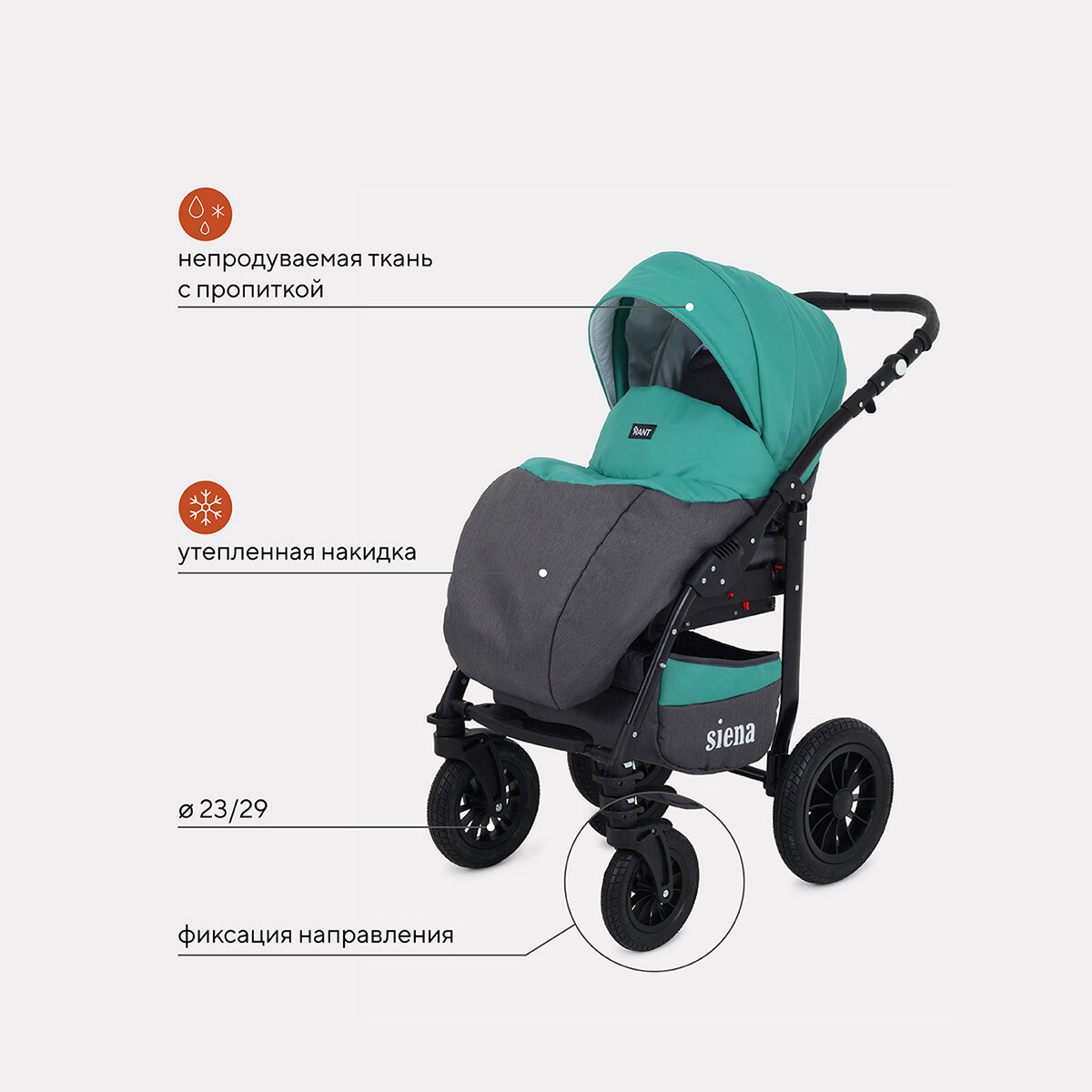 Коляска детская универсальная Rant Siena New 2 в 1, 04 серый-т. бирюзовый