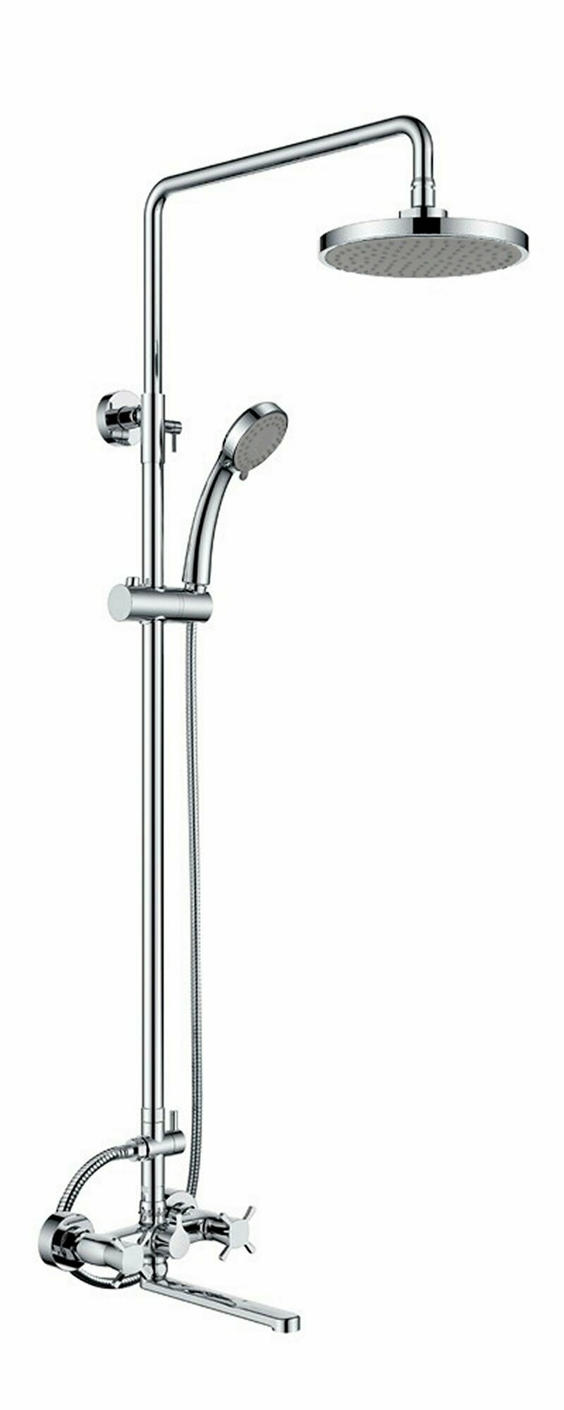 | Комплектация | душевая стойка - 1 шт. / верхний душ - 1 шт. / лейка - 1 шт. / держатель для душа - 1 шт. / шланг - 1 шт. / смеситель - 1 шт. / эксцентрики - 2 шт. / отражатели - 2 шт. / гибкая подводка - 2 шт. / инструкция / гарантийный талон |