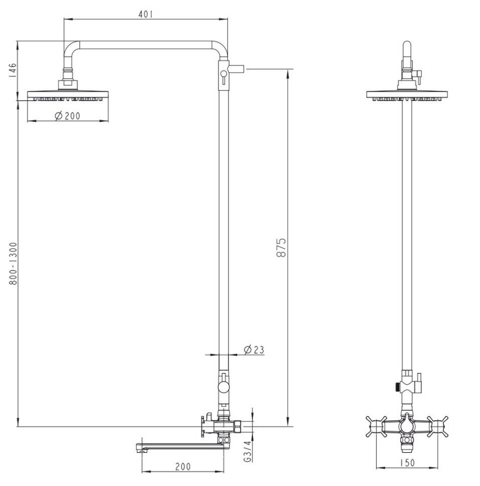 | Дополнительная информация | высота стойки для душа: 875 мм; диаметр верхнего душа: 200 мм |