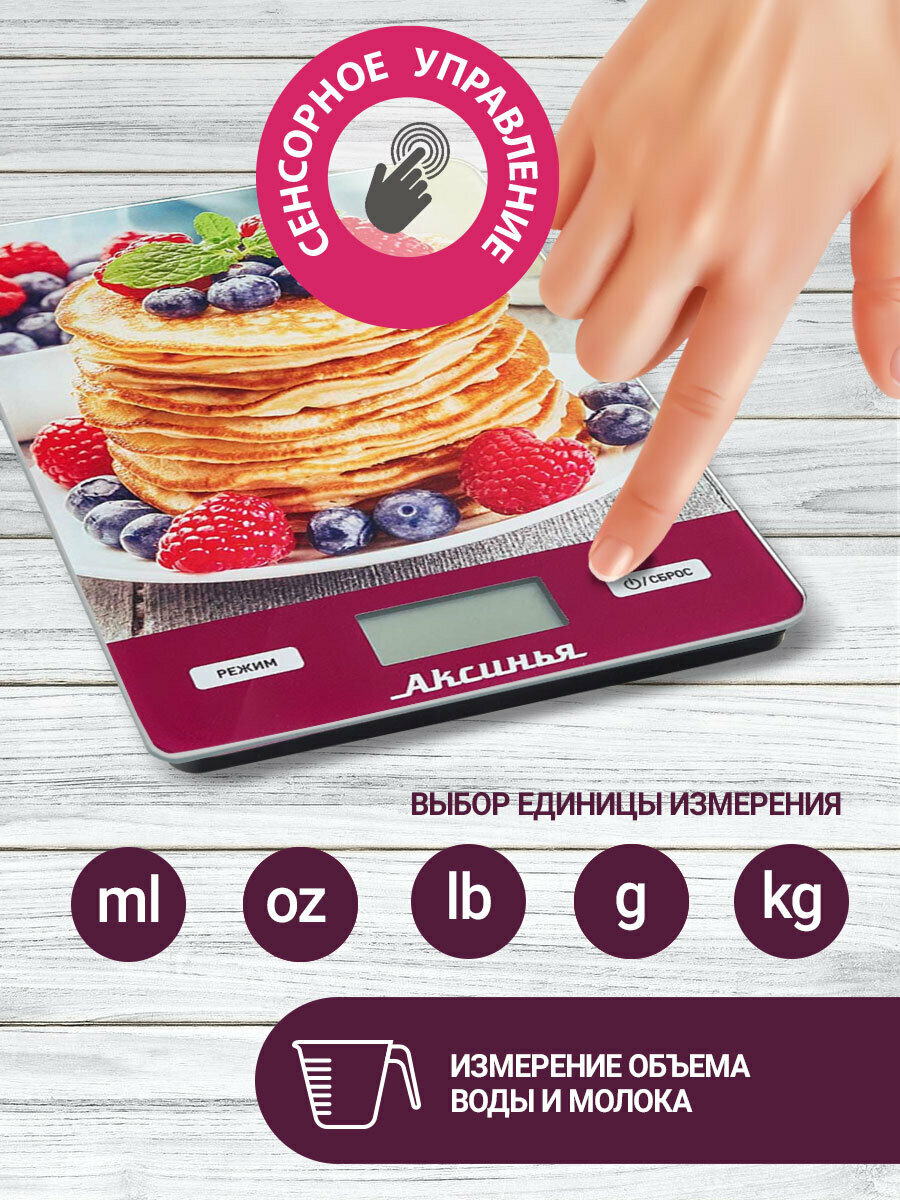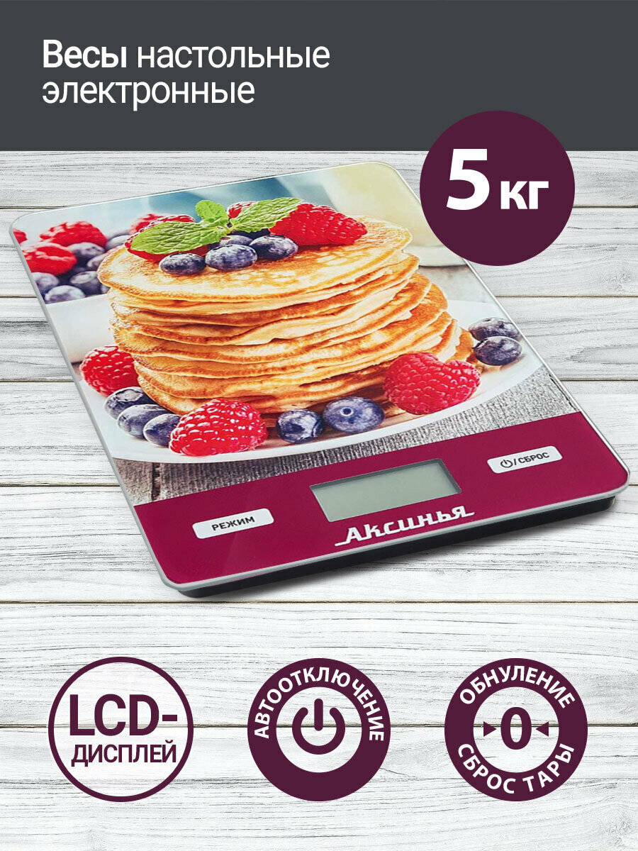 Весы кухонные электронные Аксинья КС-6513 "Блинчики": 5кг, стекло (24) . интересное: