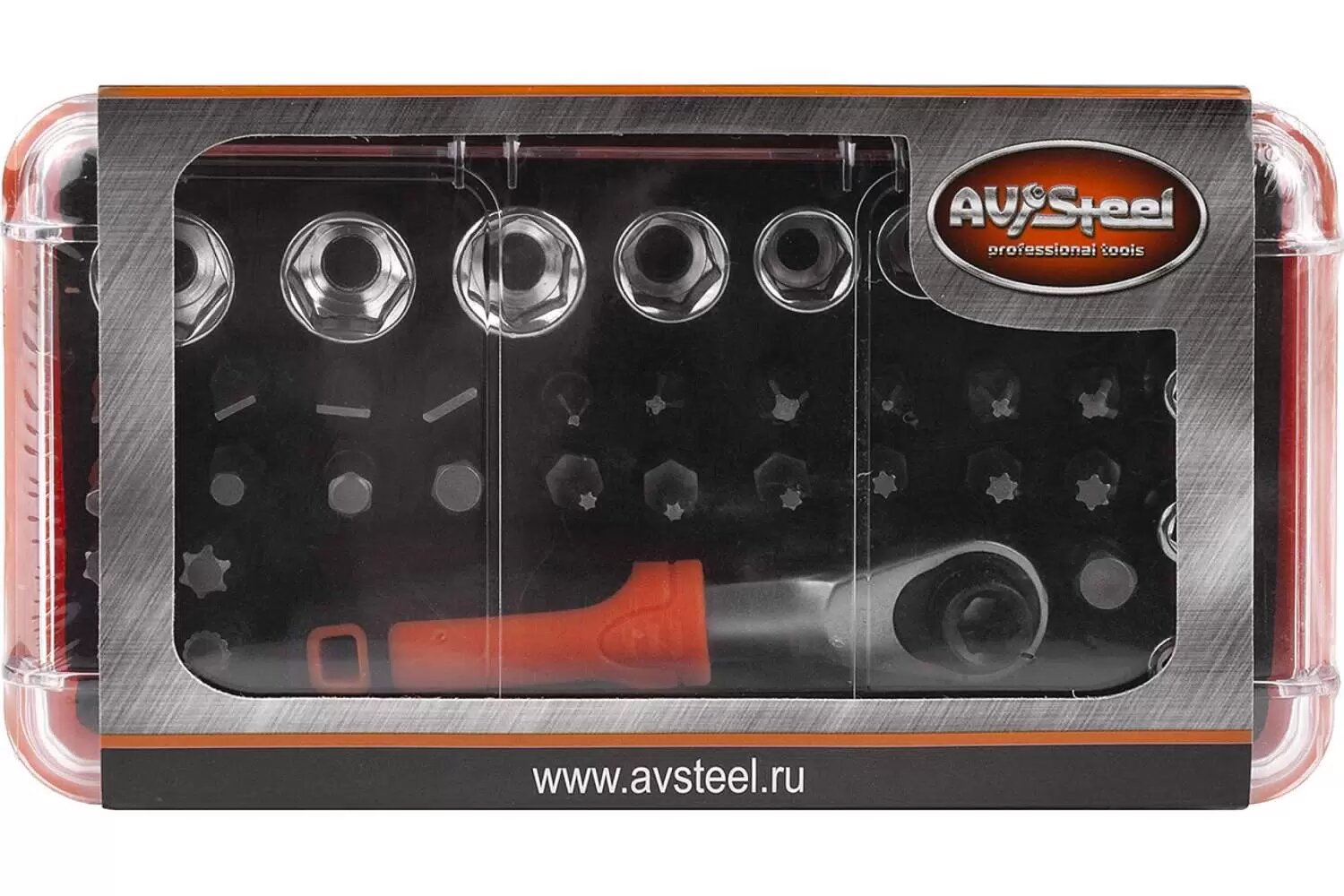 Набор бит и торцевых головок AVSteel AV-071037, 37 предм., черный/красный