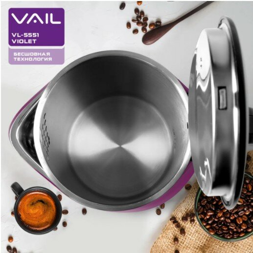 Чайник электрический VAIL VL-5551 (seamless) фиолетовый 1,8 л.