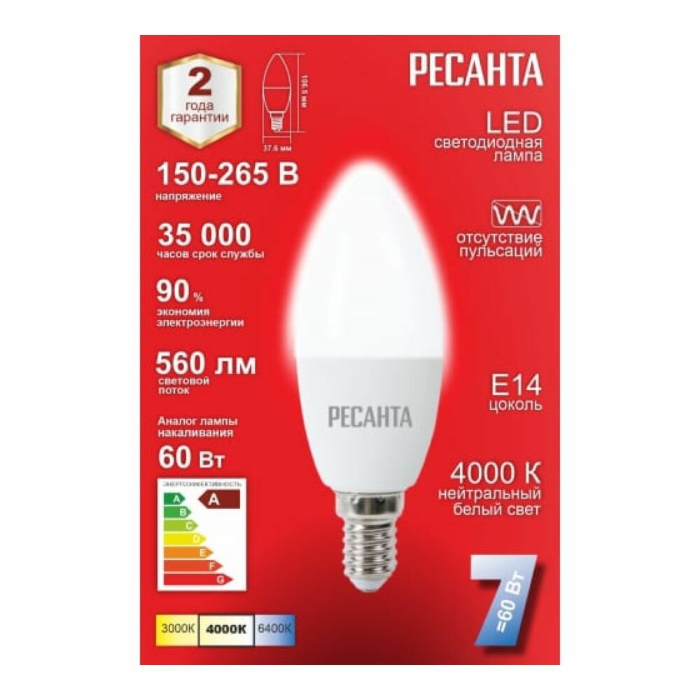 Светодиодная лампа Ресанта LL-R-C37-7W-230-4K-E14 интересное: