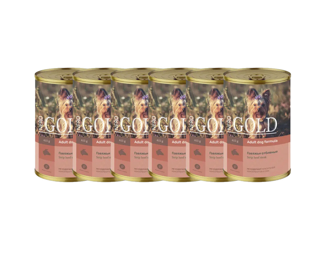 NERO GOLD ADULT DOG STRIP BEEF STEAK для взрослых собак говяжьи отбивные банка 415 гр 415 гр х 12 шт