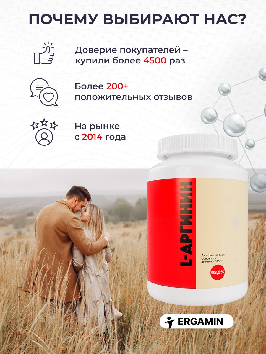 L-Аргинин, ERGAMIN, алифатическая основная аминокислота в свободной форме 98,5%, 100 капсул по 450 мг