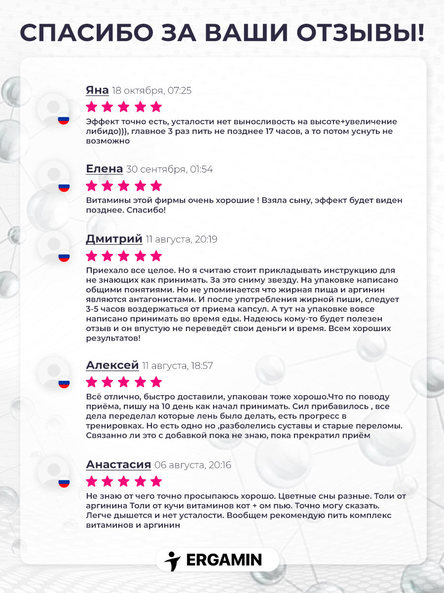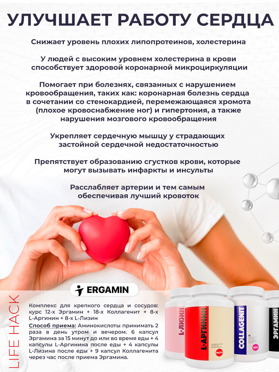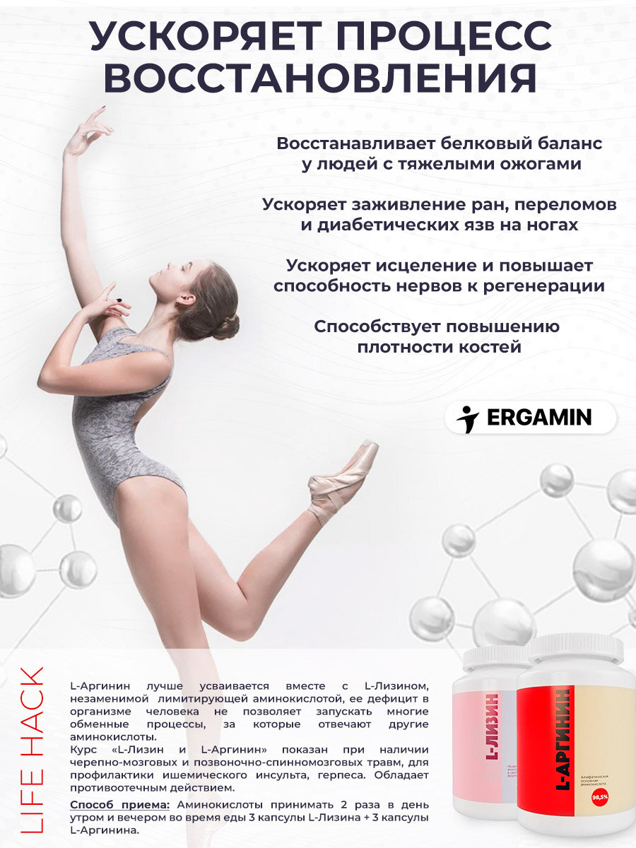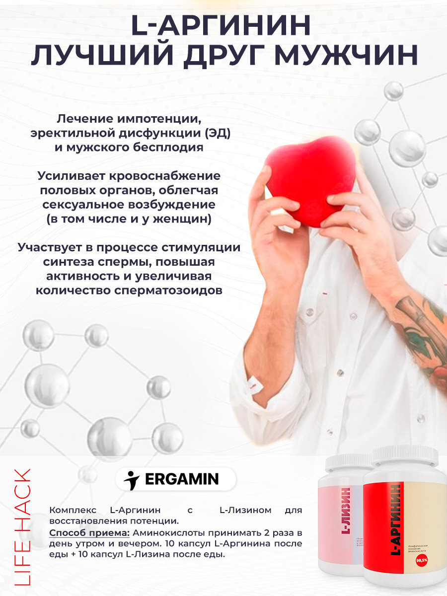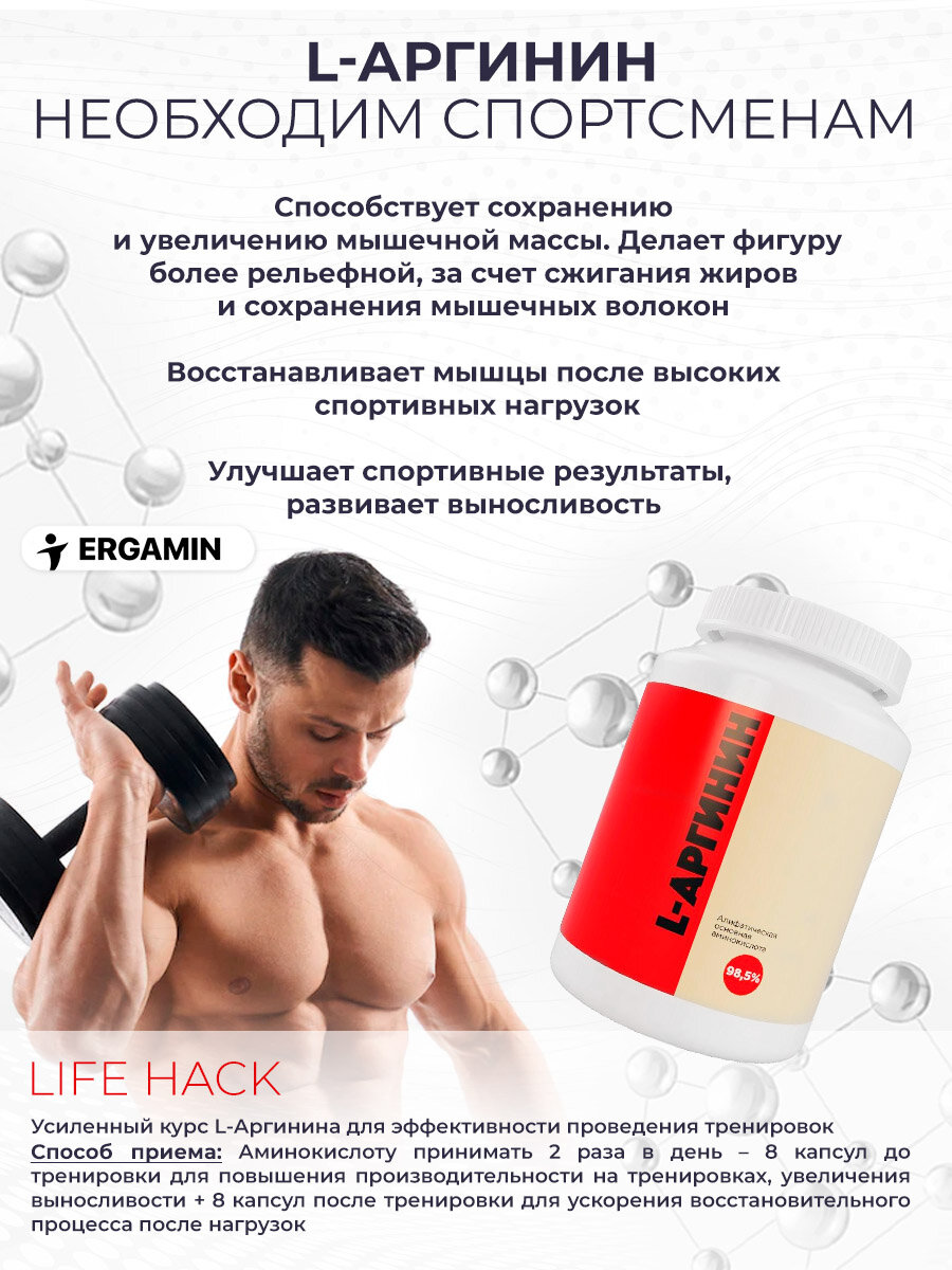 L-Аргинин, ERGAMIN, аминокислота для набора мышечной массы, 100 капсул по 450 мг