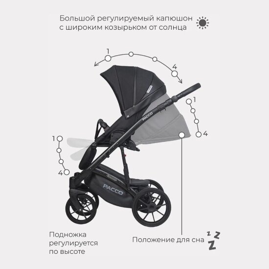 СохранитьКоляска детская универсальная Riko Basic Pacco 2 в 1, 09 Black черный интересное:
