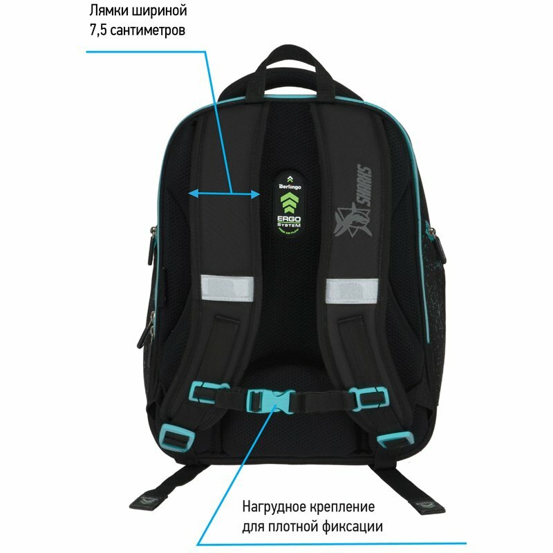 | Особенности | ножки / эргономичная спинка / ручка для переноски / светоотражающие элементы / карабин для ключей / водоотталкивающая пропитка / вентилируемая спинка / разделитель в главном отделении / грудная стяжка / регулируемые лямки / жесткое дно |