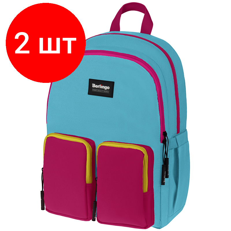 Купить Комплект 2 шт, Рюкзак Berlingo Color blocks "Blue fuxia" 39*28*17см, 2 отделения, 4 кармана, уплотненная спинка
