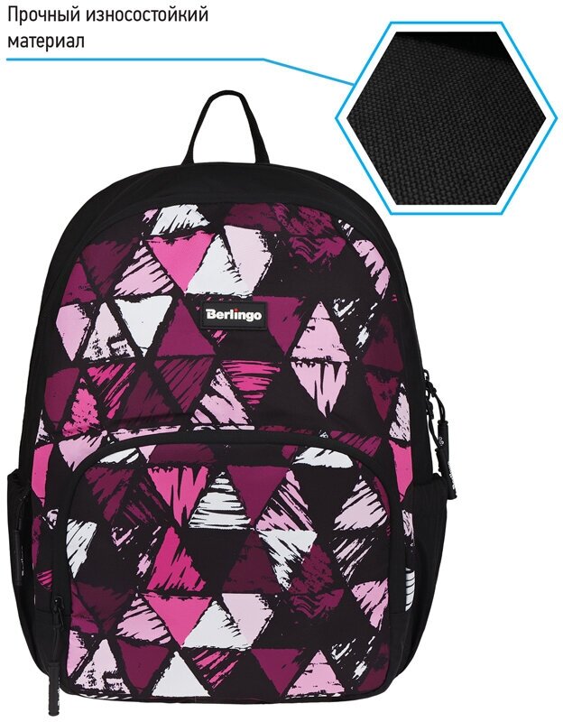 СохранитьКомплект 2 шт, Рюкзак Berlingo Light "Black triangles" 39.5*28*16см, 2 отделения, 3 кармана, уплотненная спинка интересное: