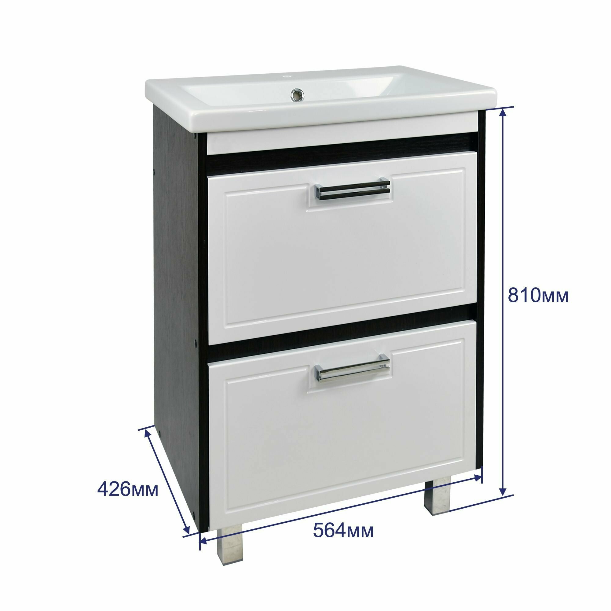 Тумба Мираж 60 напольная, белая, венге под умывальник Сomo 60, с ящиками DORATIZ 9911.092 интересное: