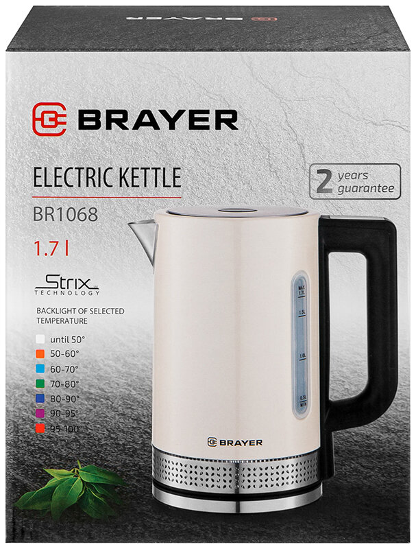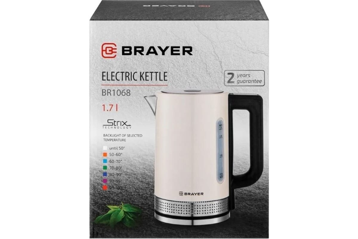 Чайник электрический 1,7 литра с регулировкой температурой, BRAYER BR1068, бежевый/черный