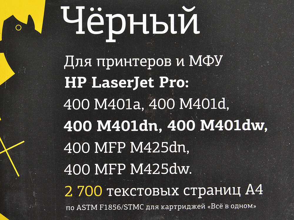| Совместимые принтеры | HP LaserJetPro 400 M401aPro 400 M401dPro 400 M401dnPro 400 M401dwPro 400 MFP M425dnPro 400 MFP M425dw |