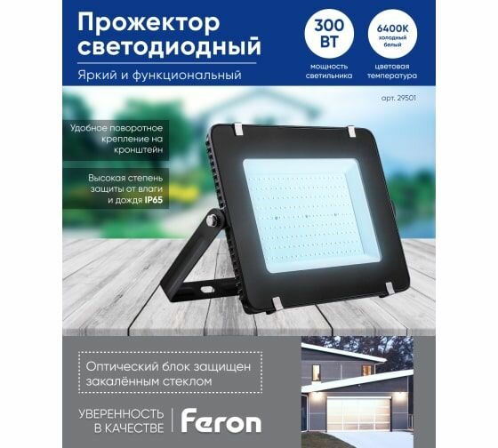 Прожектор светодиодный Feron LL-926 29501, 300 Вт, свет: холодный белый