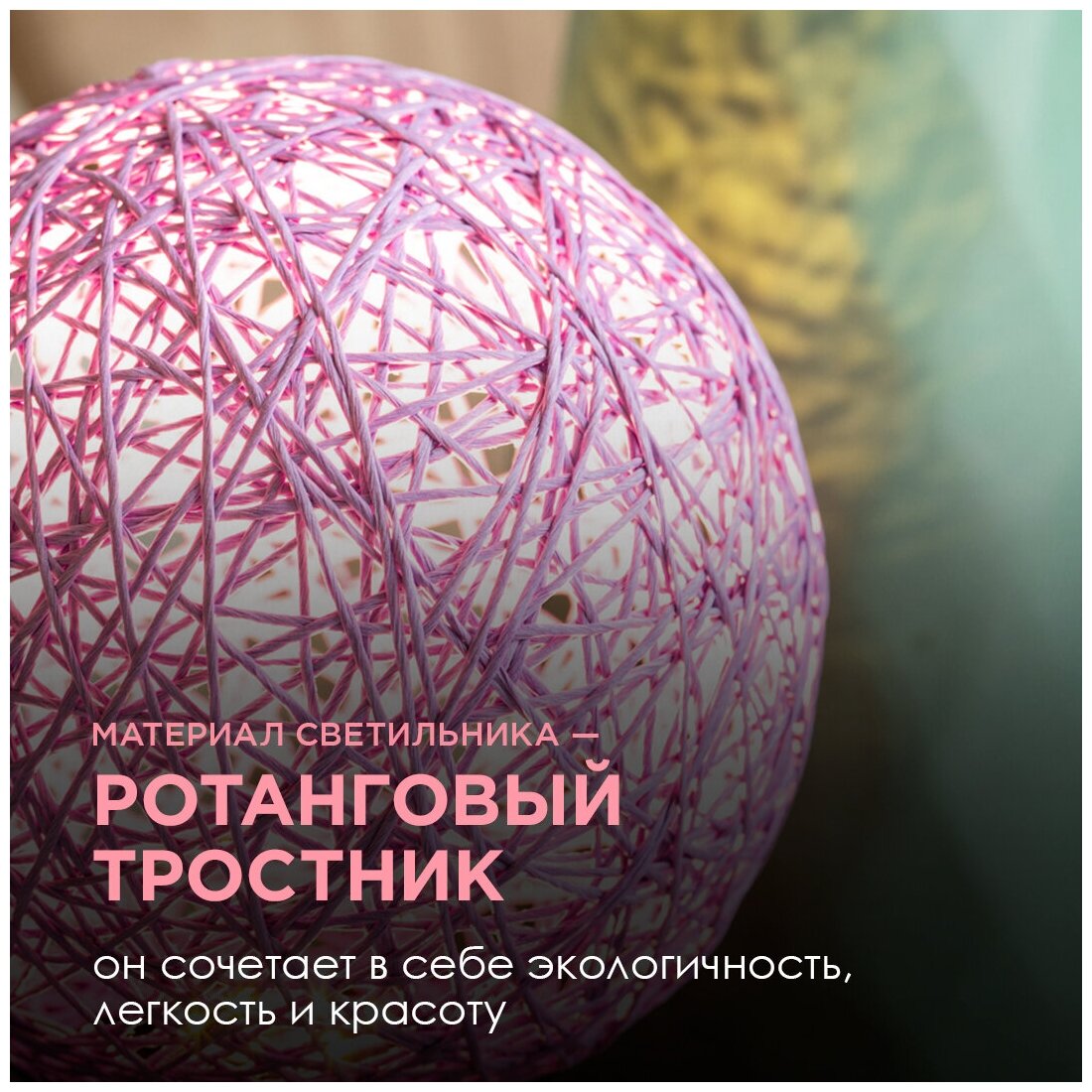 Светодиодный ночник из ротанга с теплым свечением для интерьера / Розовый