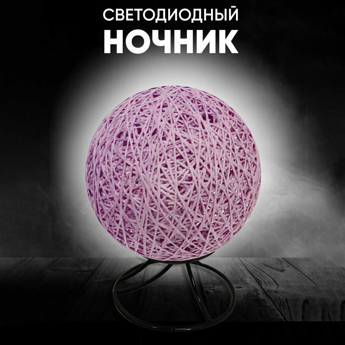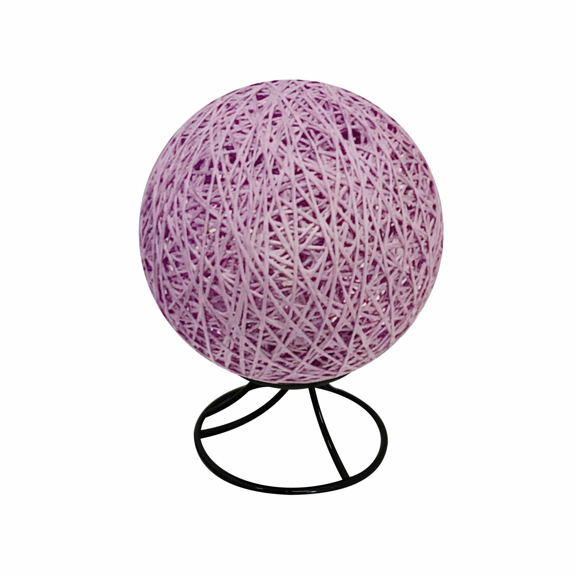 Ротанговый светодиодный ночник-лампа в виде шара с плетенным абажуром с теплым свечением, фиолетовый