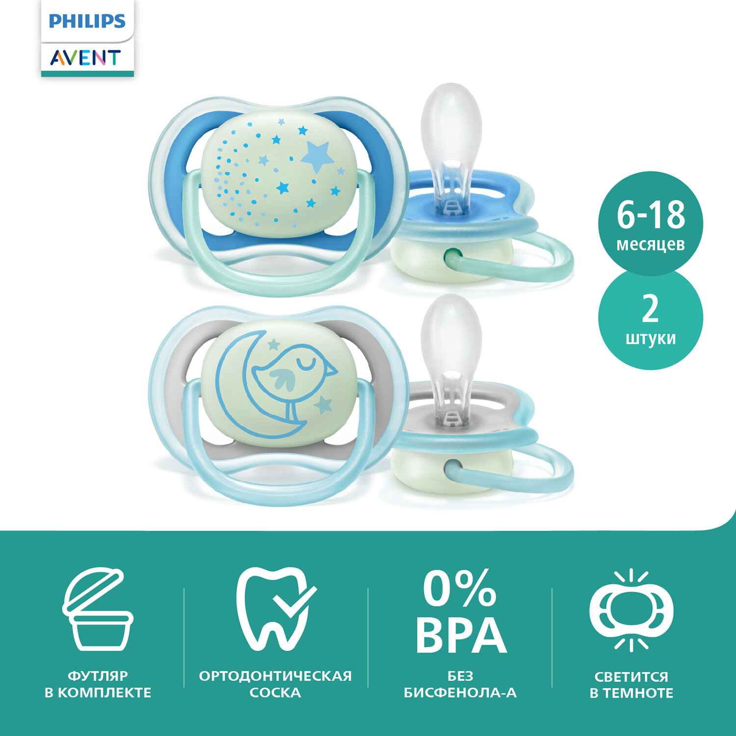 Купить Philips SCF376/21 Пустышка 6-18M, 2 шт ночная для мальчика SCF376/21