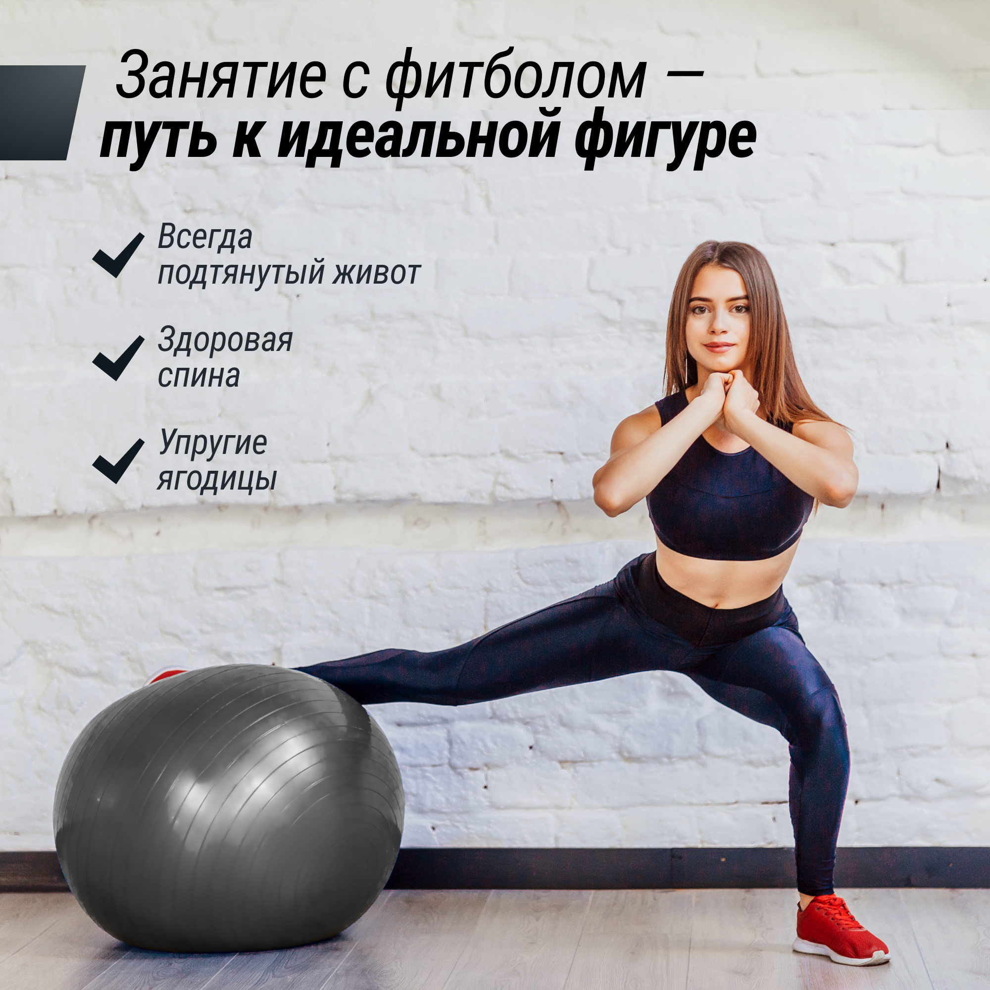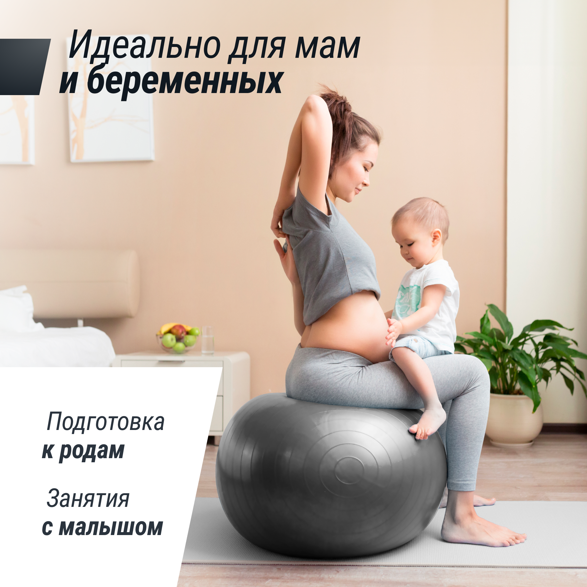 Купить Фитбол с насосом для детей и взрослых UNIX Fit, мяч гимнастический для беременных, антивзрыв 65см, серый UNIXFIT