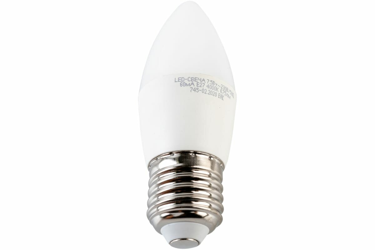 Лампа светодиодная ASD LED-СВЕЧА-STD 4000K, E27, C37, 7.5 Вт, 4000 К