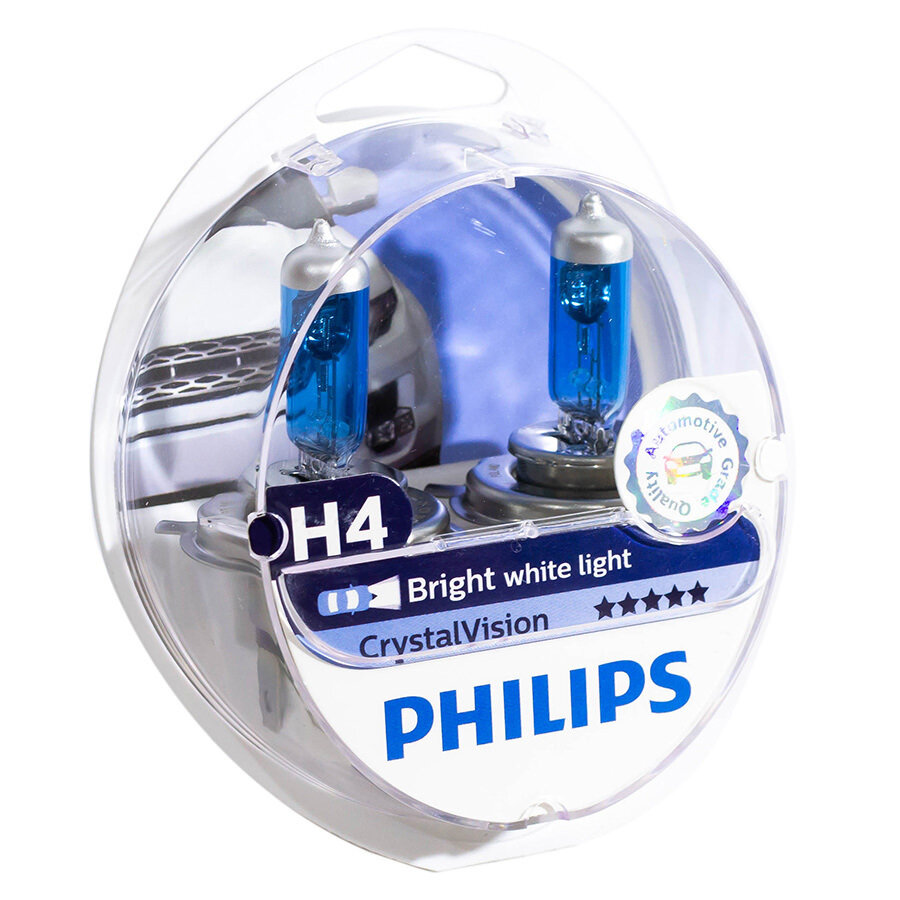 лампа h4 12v 60/55вт philips cristal vision 4300k (белый яркий свет) (2шт+2шт w5w) philips