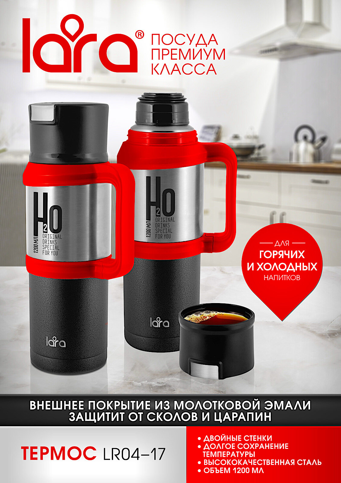 Термос Lara, LR04-17, черный, серебристый, 1,2 л