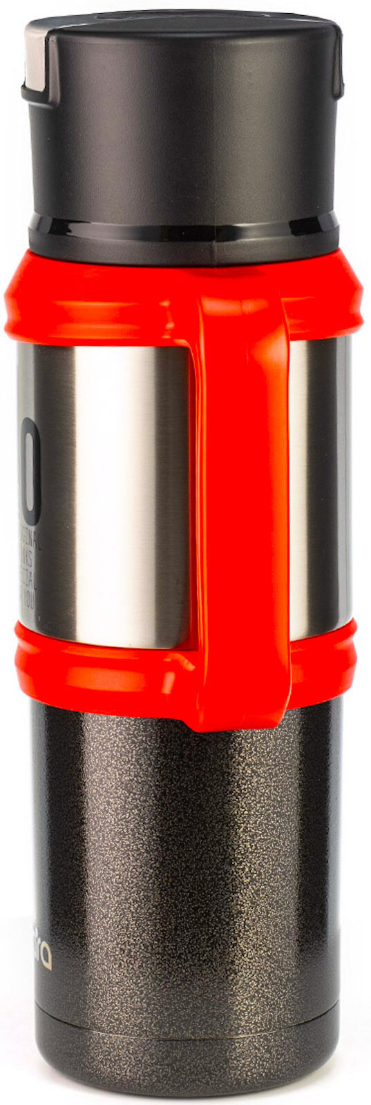 Lara Термос черный/сталь 1200мл, молотковая эмаль, фиксированная ручка, крышка-стакан LR04-17