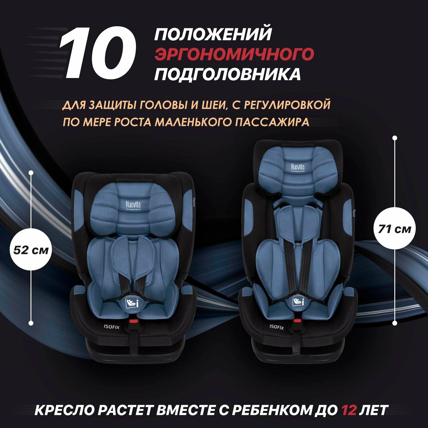 Купить Автокресло детское с креплением ISOFIX Nuovita Maczione NiS3-1, группа 1/2/3, от 9 месяцев до 12 лет (Blu/Синий)