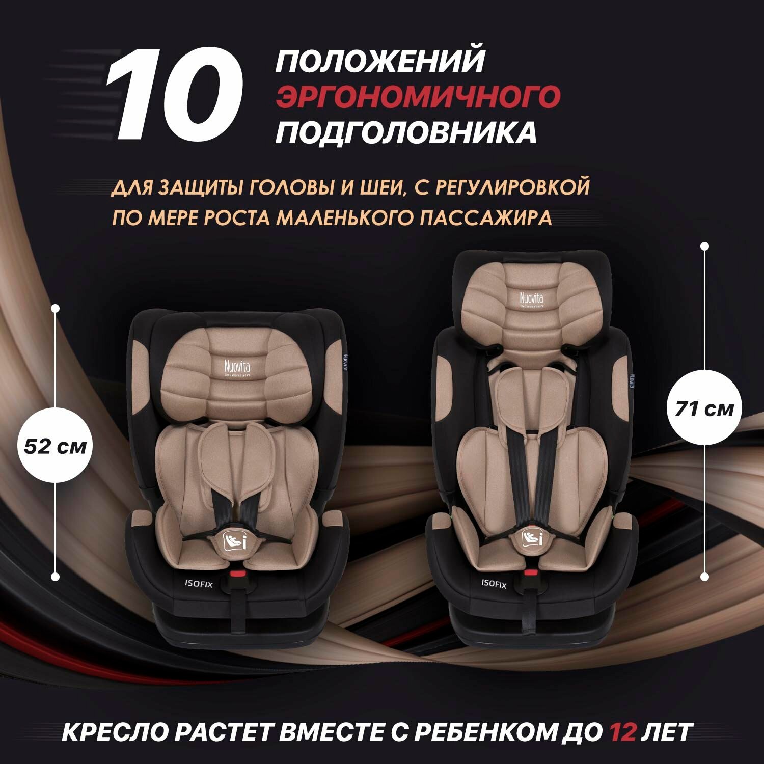 Купить Автокресло детское с креплением ISOFIX Nuovita Maczione NiS3-1, группа 1/2/3, от 9 месяцев до 12 лет (Beige/Бежевый)