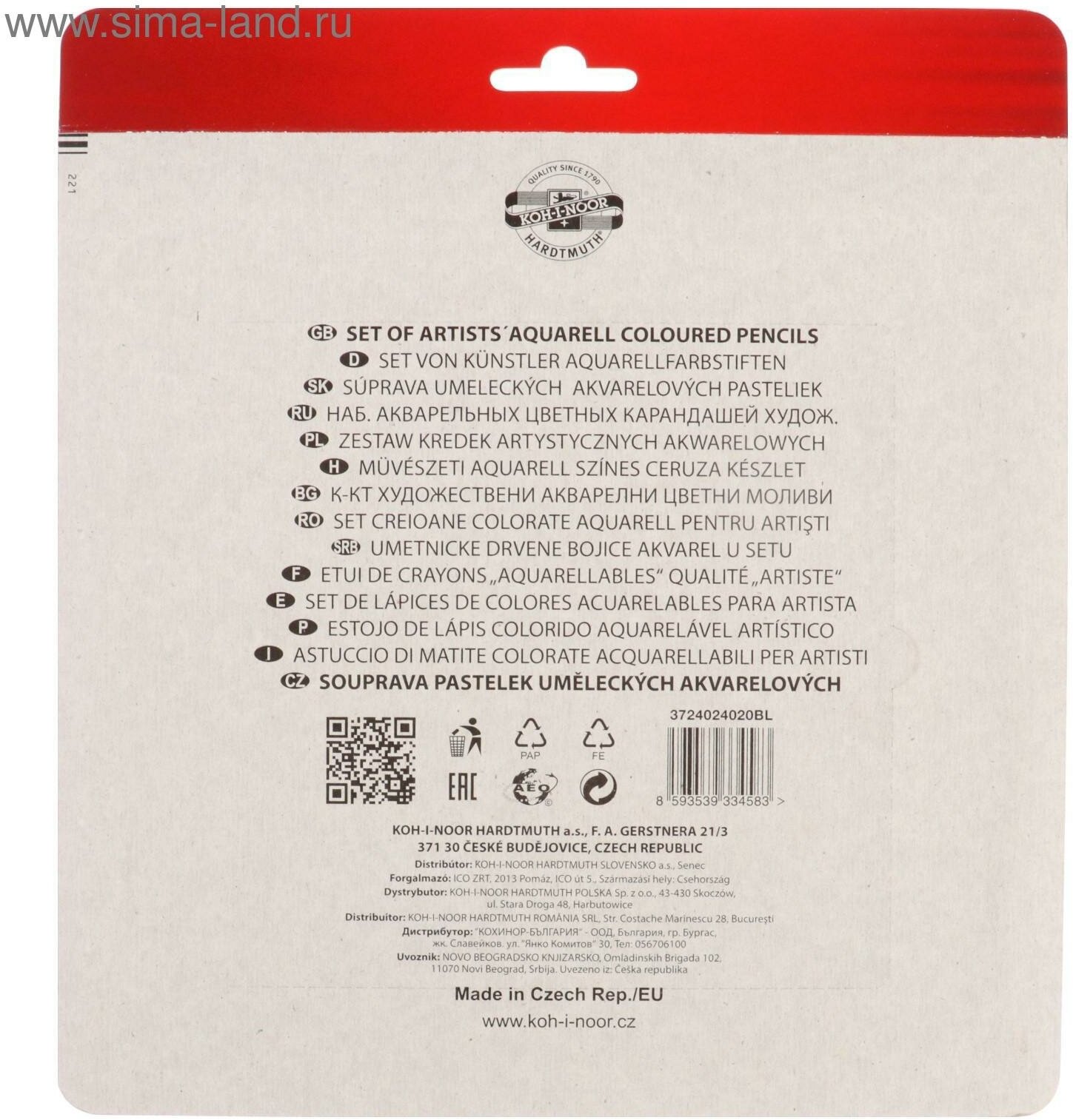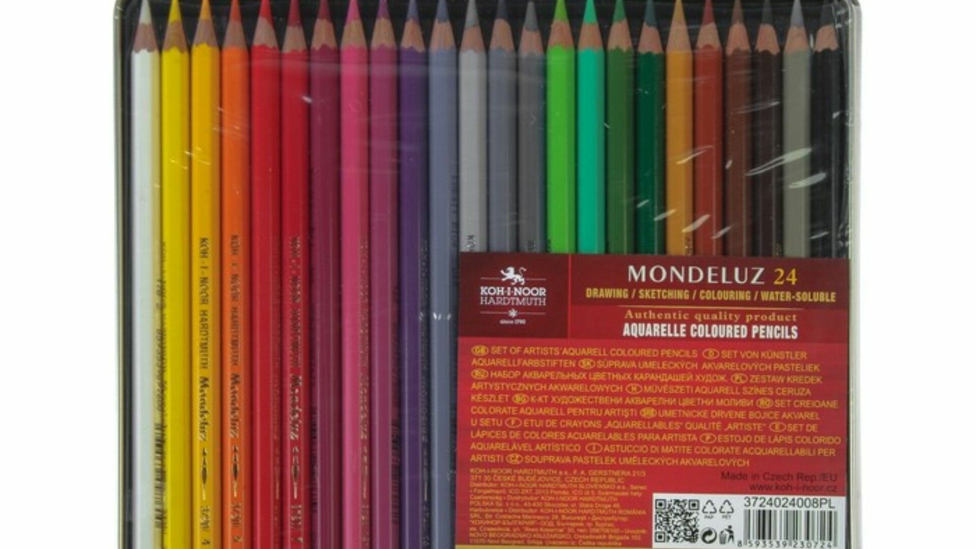 Карандаши акварельные набор 24 цвета, Koh-I-Noor Mondeluz 3724, в металлическом пенале, блистер Koh- .