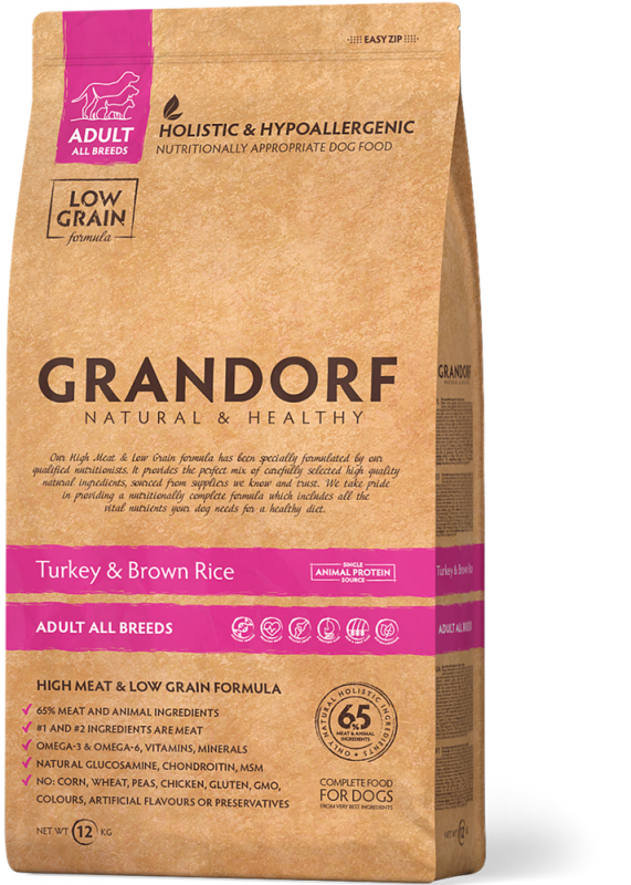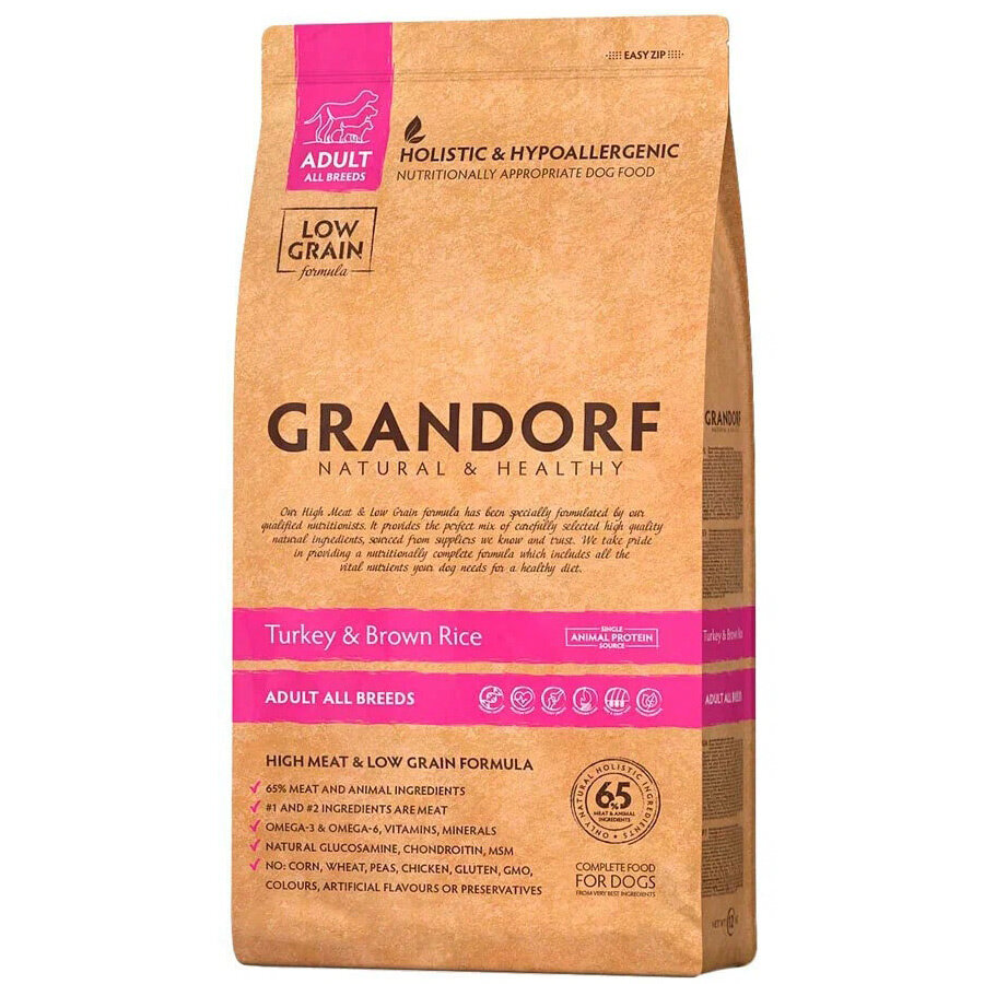 Сухой корм для собак всех пород GRANDORF. Индейка - Бурый рис. 3кг