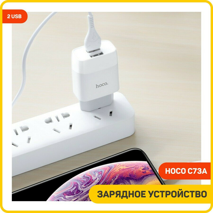 Сетевое зарядное устройство (СЗУ) Hoco C73A (2 USB) + кабель MicroUSB, 2.4 А, белый