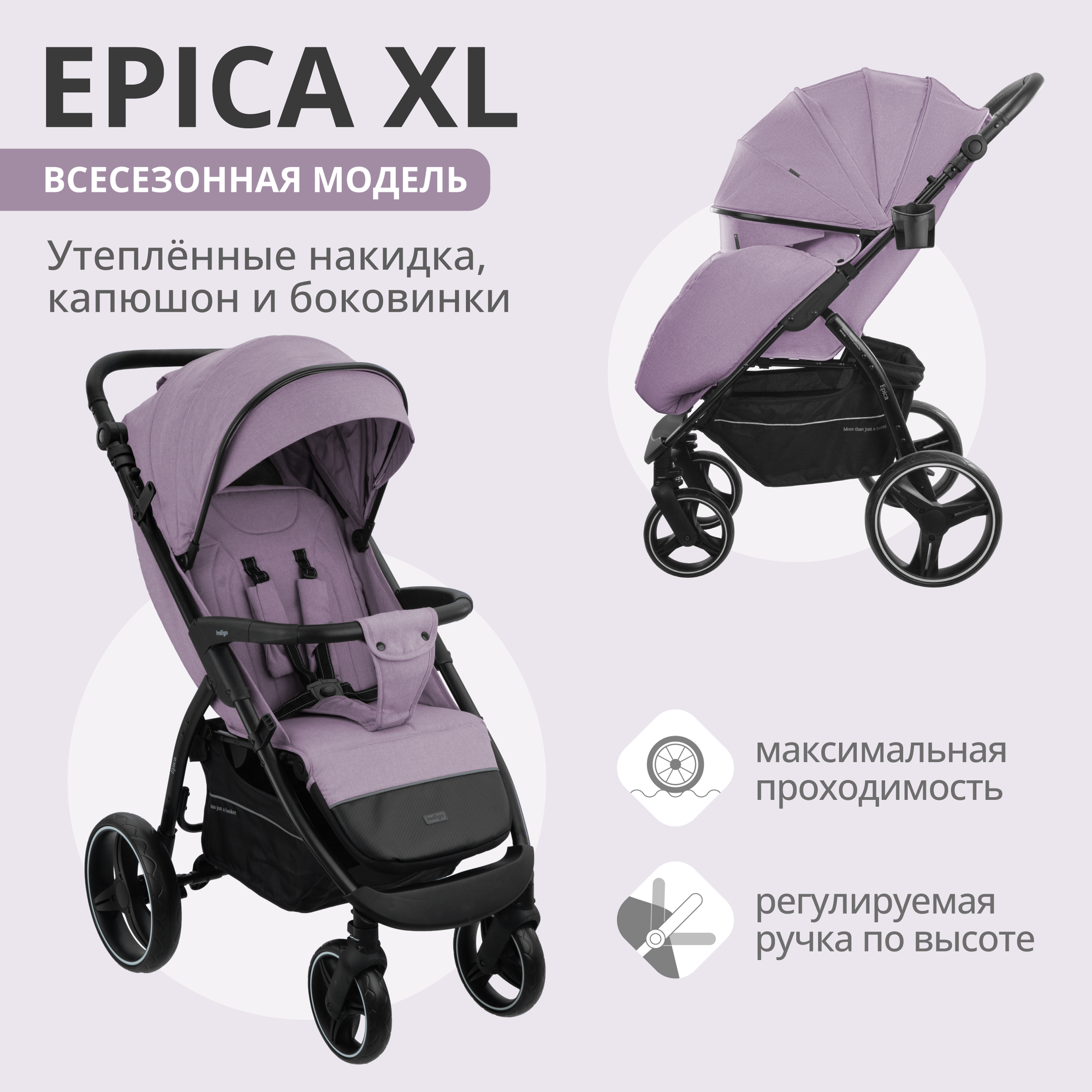 Прогулочная коляска Indigo Epica XL, фиолетовый