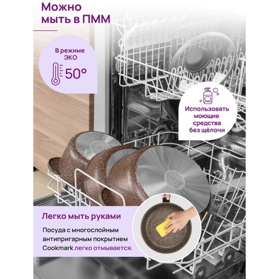 | Особенности | мытье в посудомоечной машине / съемная ручка |
