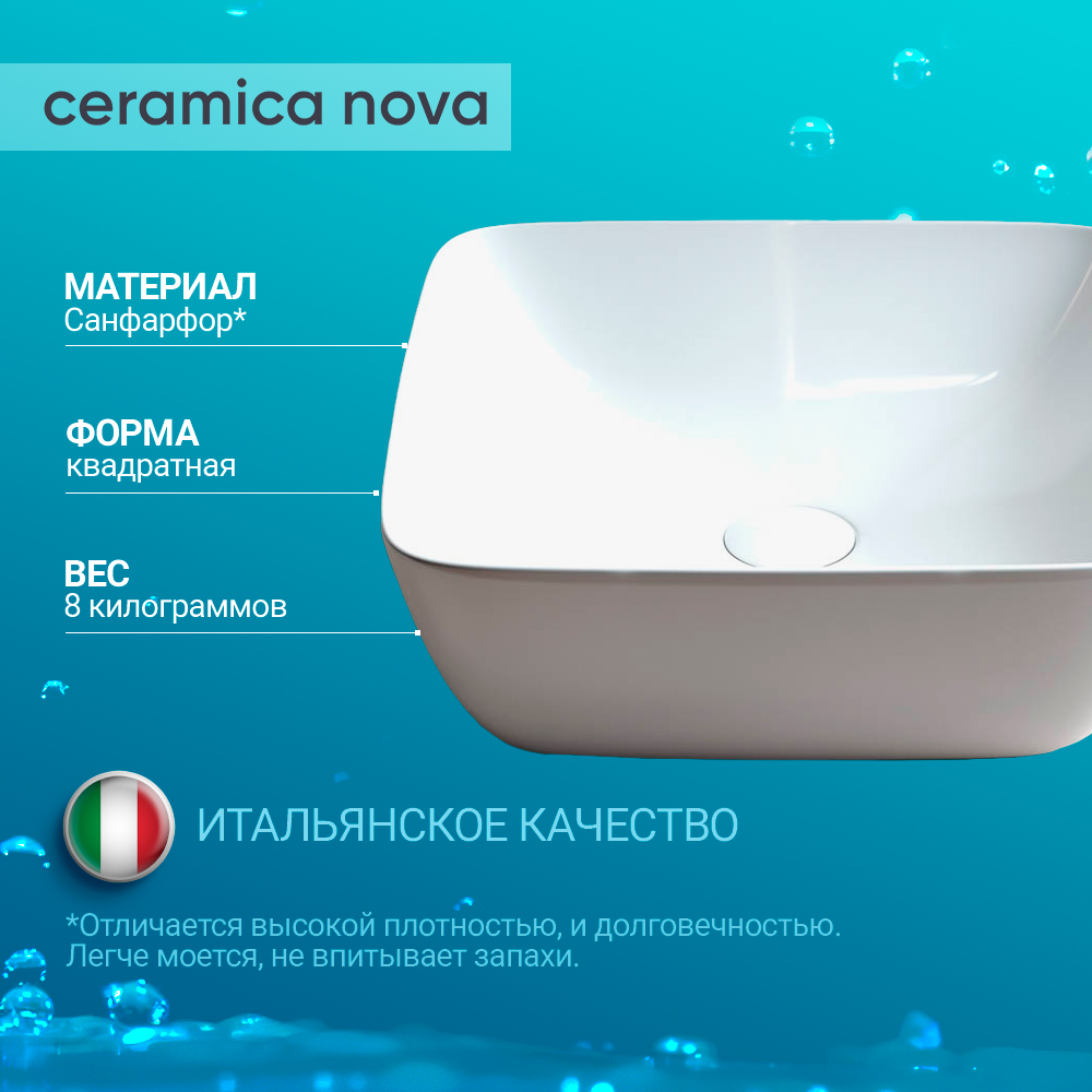 Раковина накладная 42х42х14,5 квадратная CERAMICA NOVA FORM CN2002