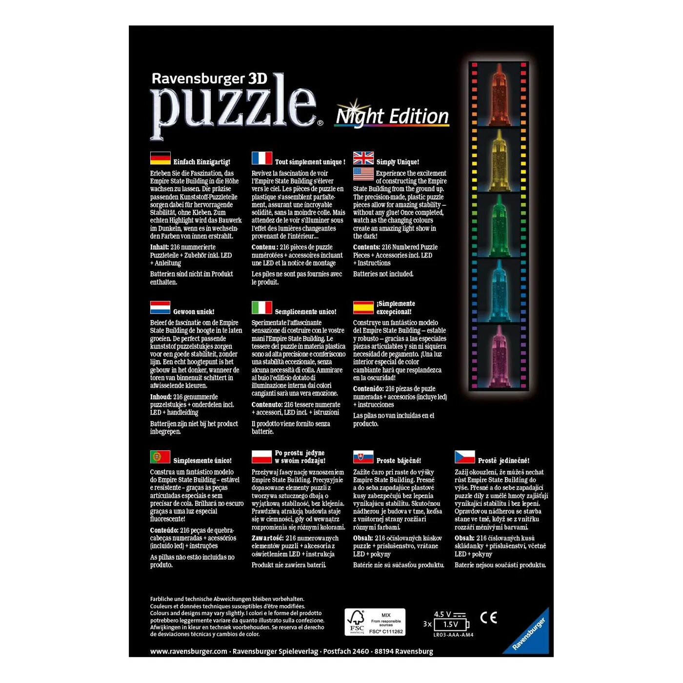 3D Пазл Ночной Эмпайр Стейт Билдинг Ravensburge светящийся 216 элементов