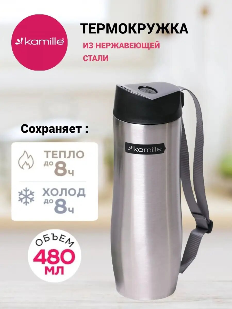 Термокружка Kamille с ремешком 480 мл. (2056) интересное: