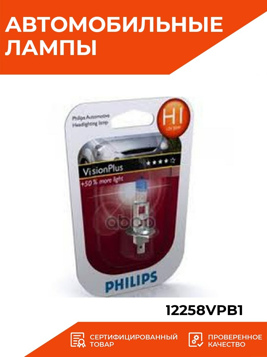 Лампа Галогенная Блистер 1Шт H1 12V 55W Visionplus (На 60% Больше Света На Дороге) Philips арт. 12258VPB1