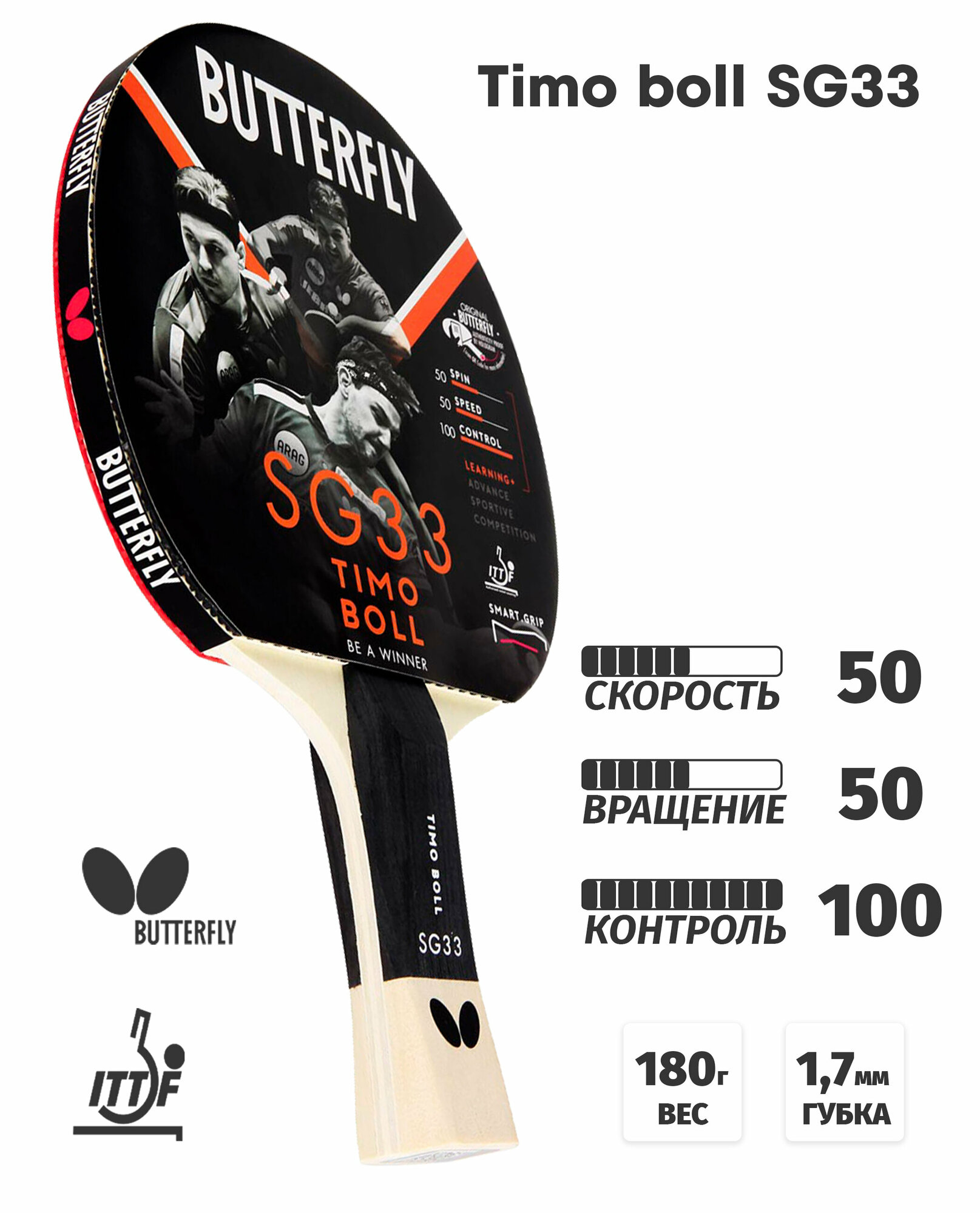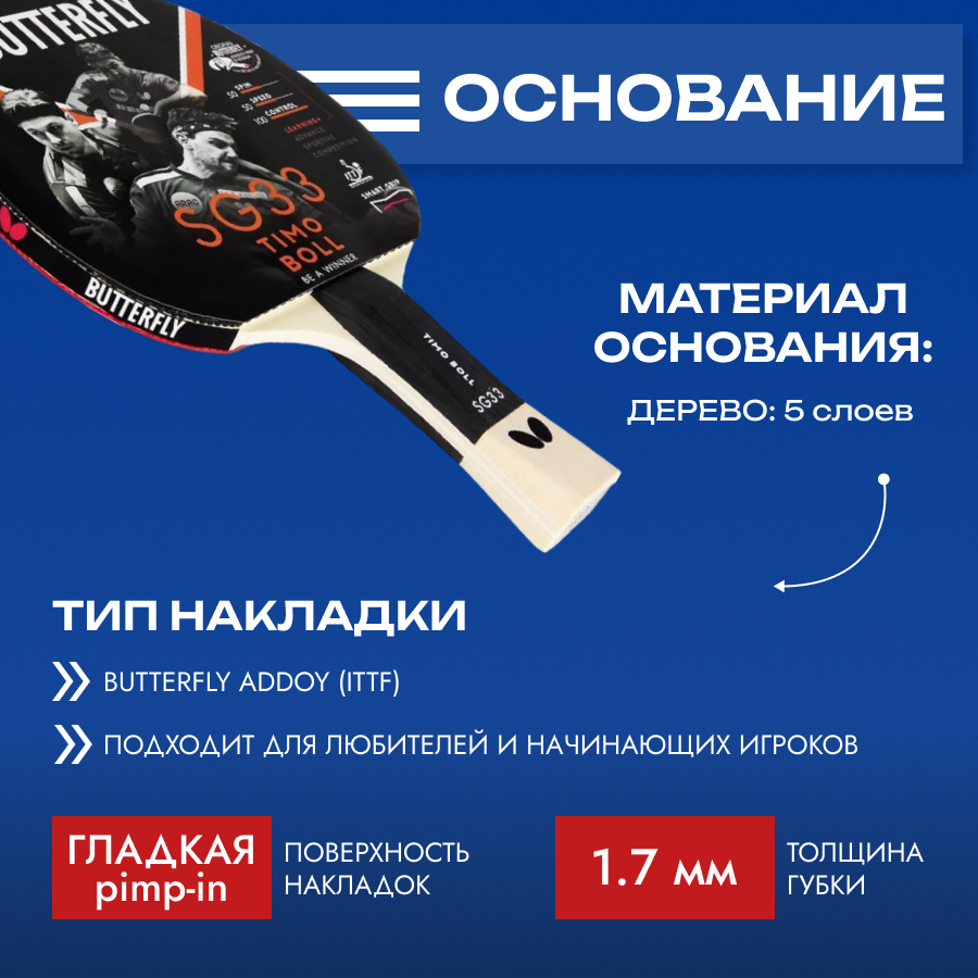 Ракетка для настольного тенниса Butterfly Timo Boll SG33 85017, CV интересное:
