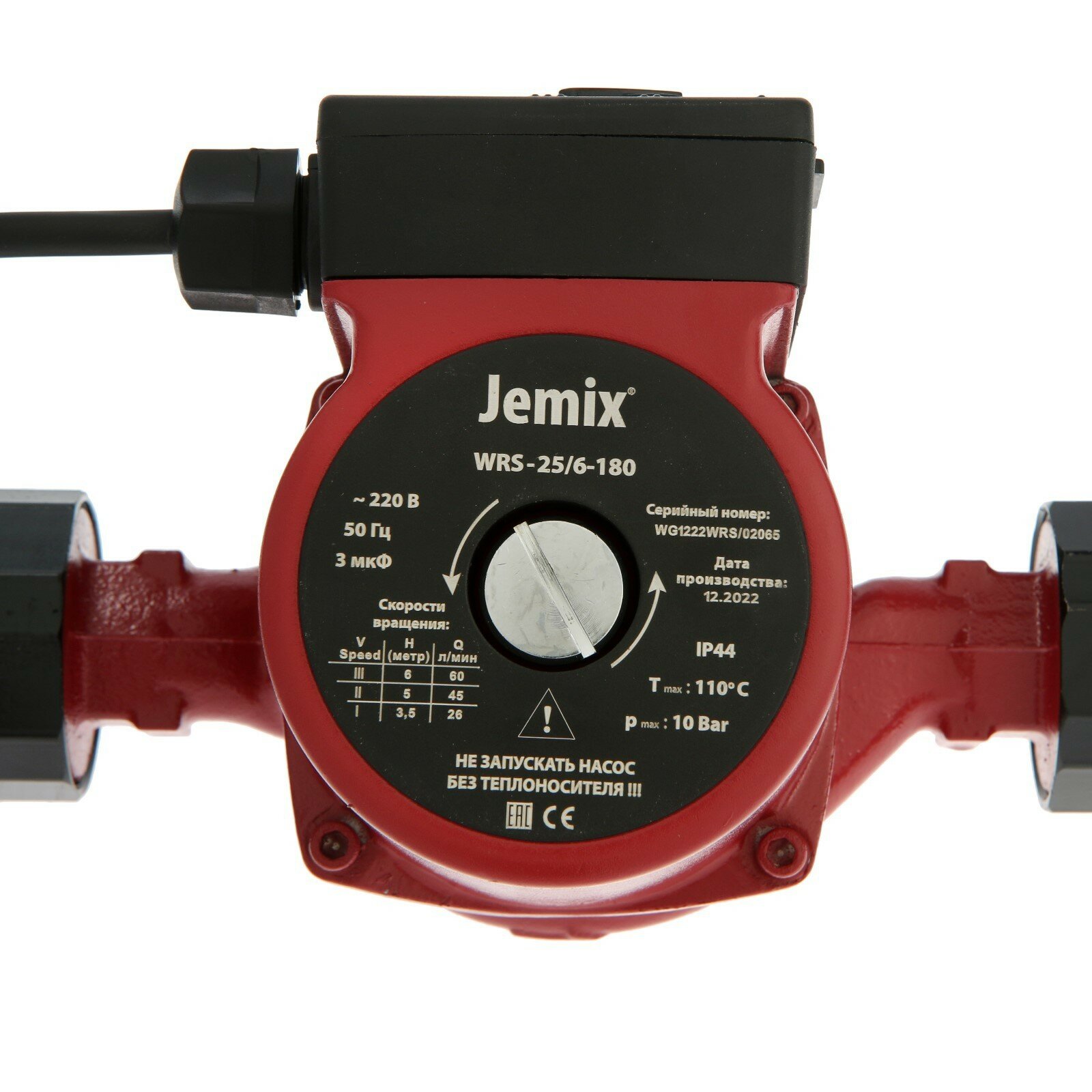 Насос циркуляционный JEMIX WRS-25/6-180 для отопления с кабелем 60 см с вилкой, гайки в комплекте