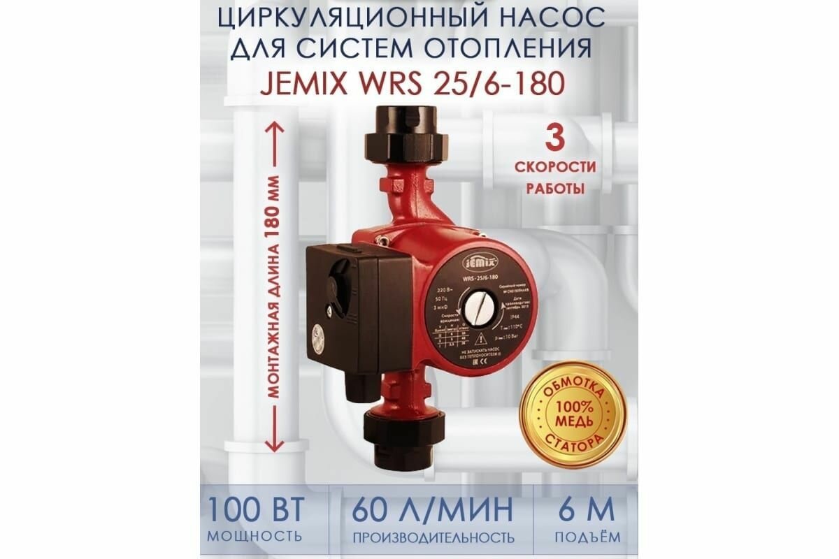 Циркуляционный насос JEMIX WRS 25/6-180 (100 Вт)