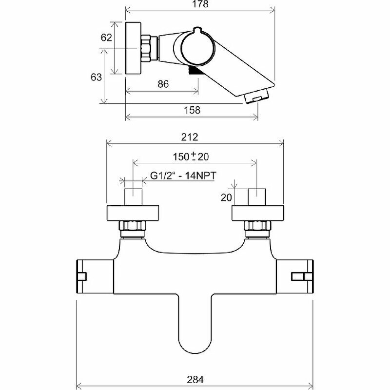 Смеситель для ванны термостатический RAVAK Termo TE 022.00/150 настенный
