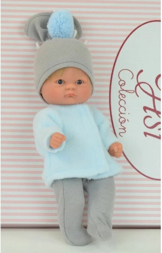 ASI кукла-пупсик - 20 см (в шапочке и костюмчике серо-голубого цвета)