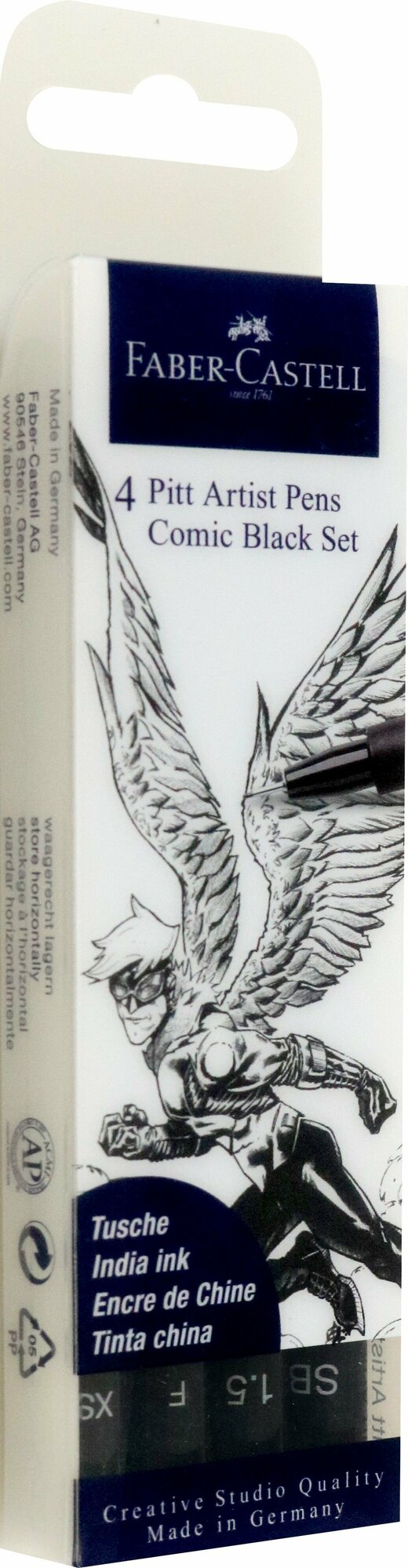 Faber-Castell Набор капиллярных ручек "Pitt Artist Pens Comic", черный, 4 шт., 0,1/0,5/bullet nib