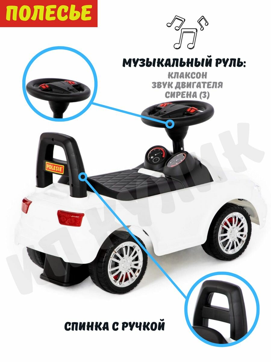 Автомобиль-каталка Полесье "SuperCar", №5, со звуковым сигналом, белая (П-84538)