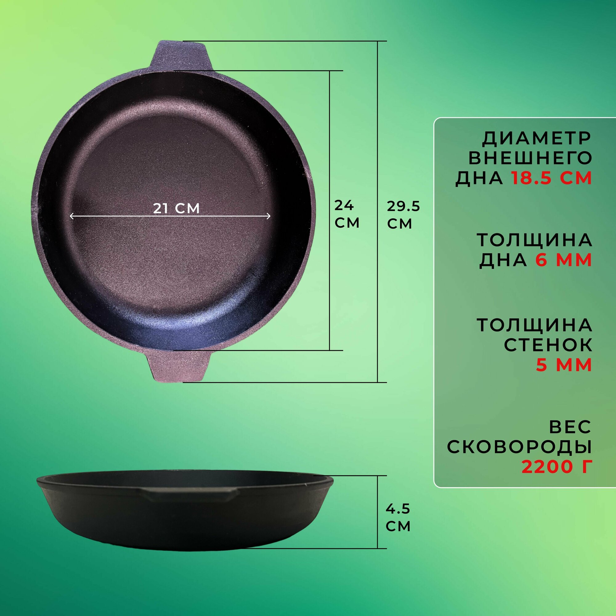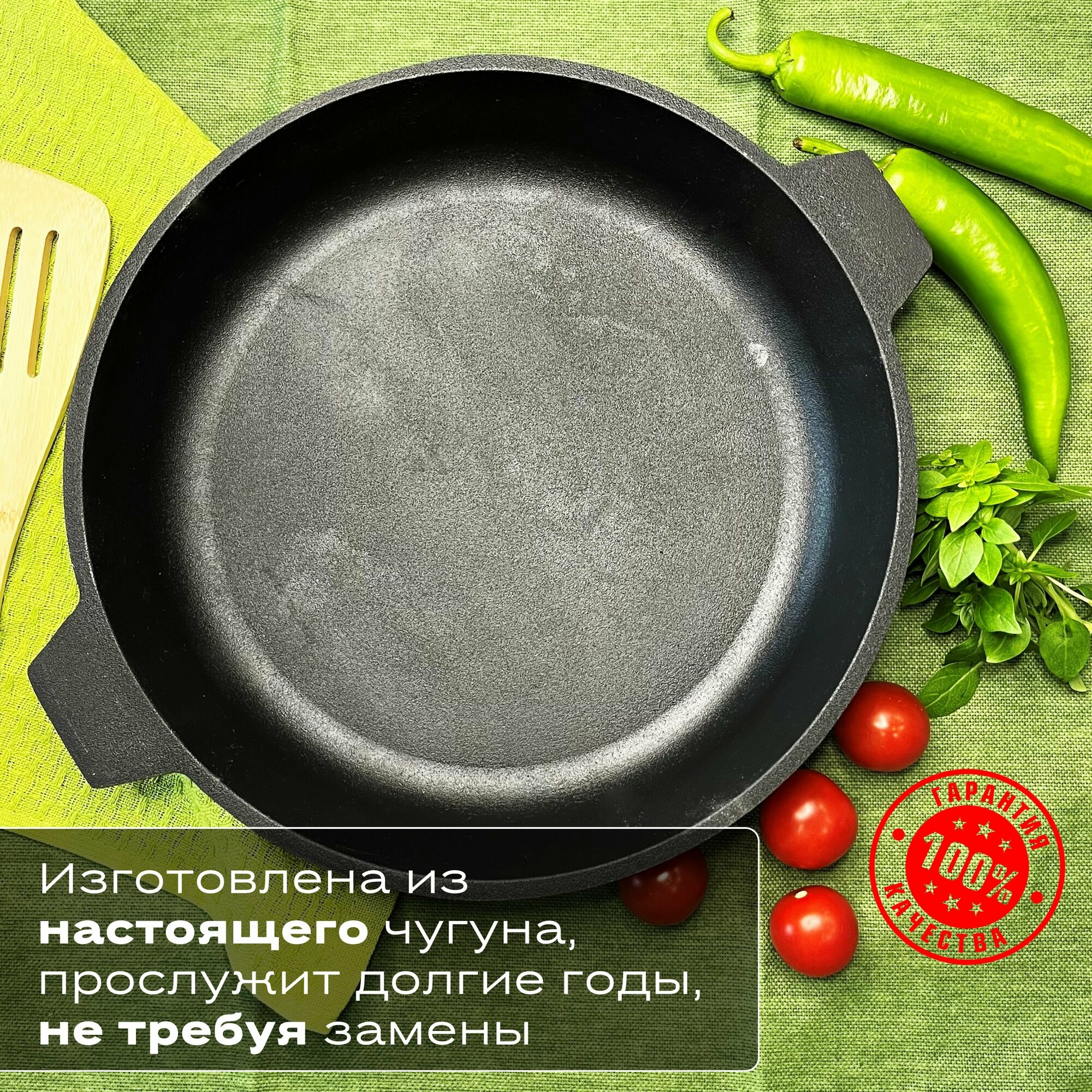 Сковорода Камская Посуда чугунная с двумя ушками, диаметр 24см / сковородка для всех видов плит