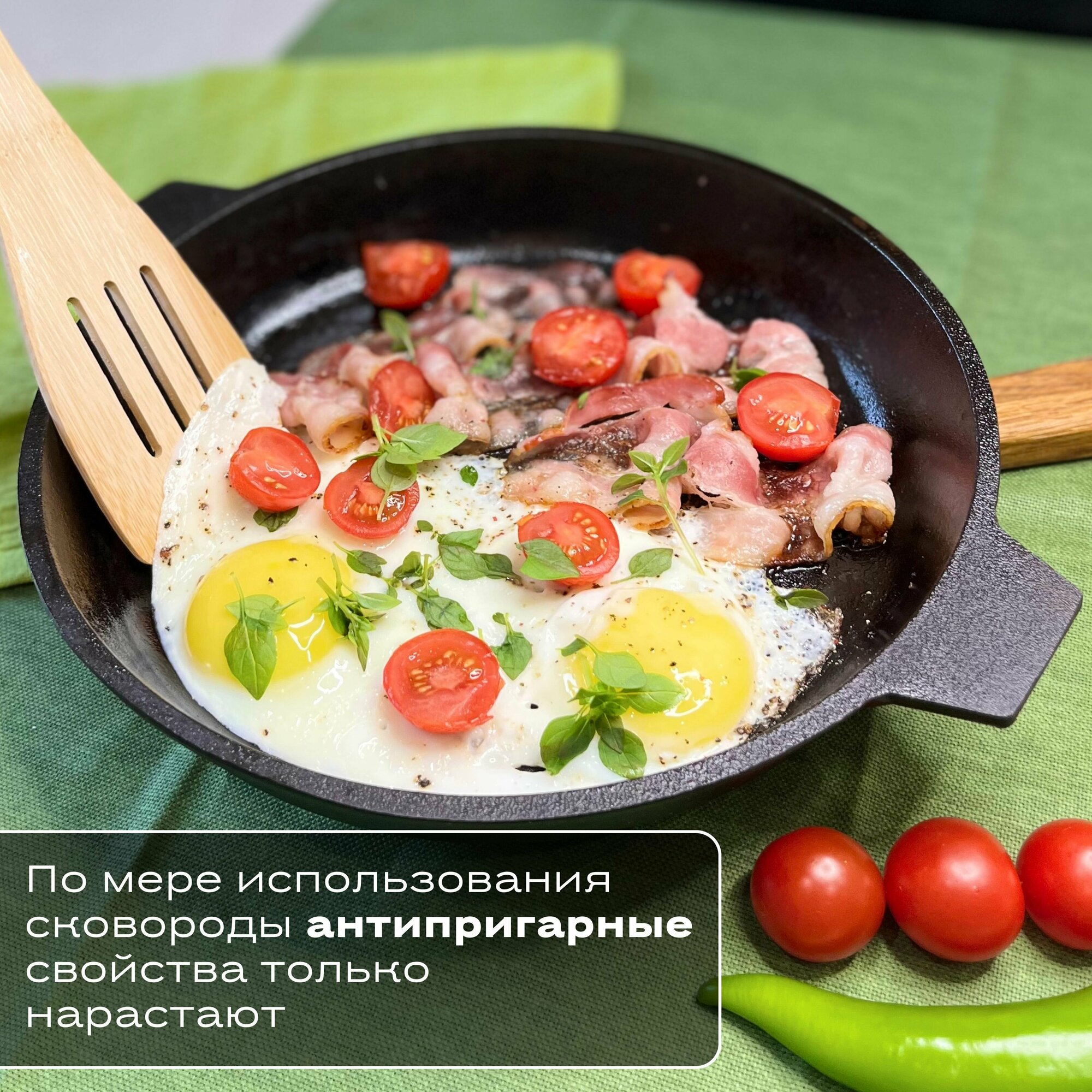 | Плюсы: | Хороша чугунная сковорода |