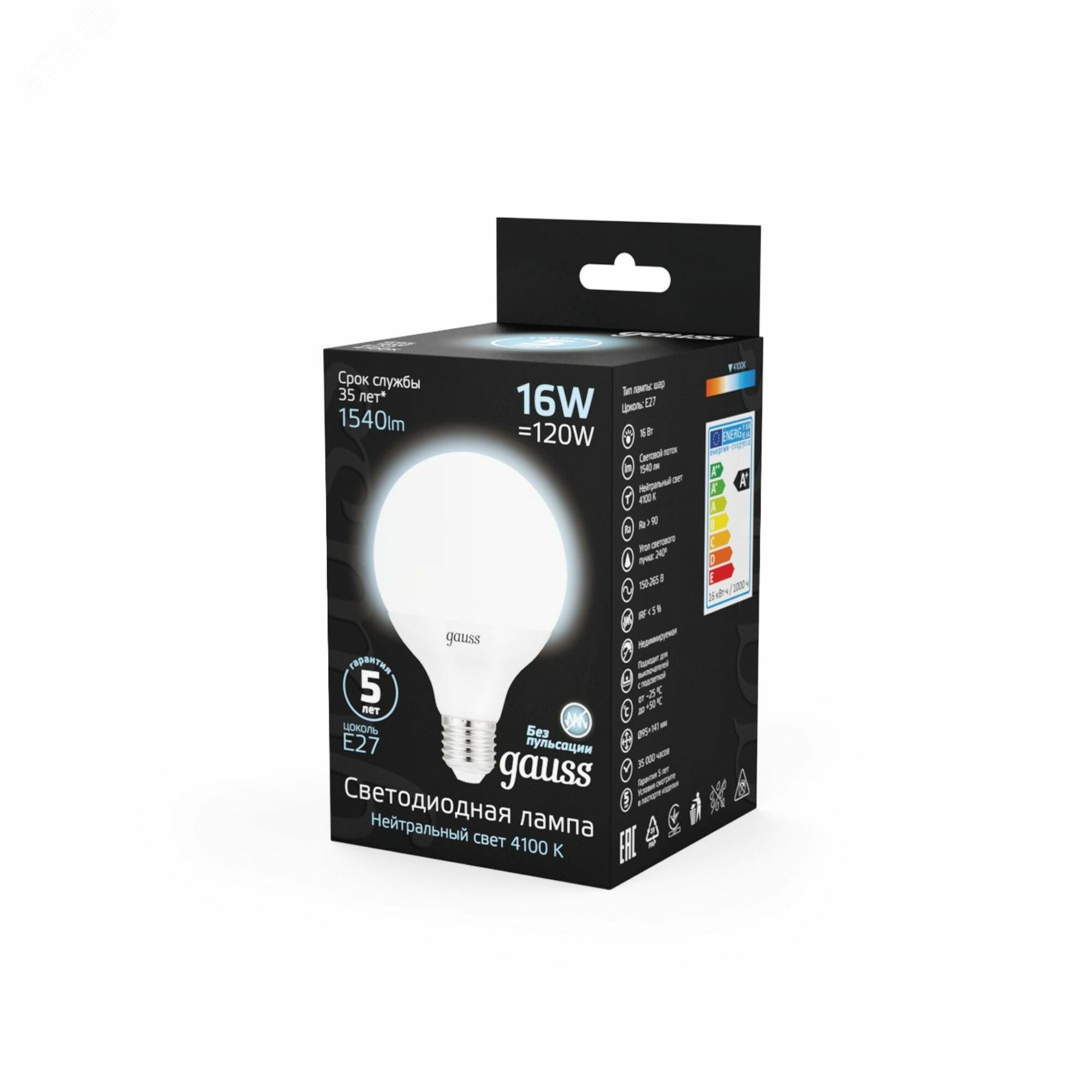 Лампа Gauss G95 16W 1540lm 4100K E27 LED 105102216